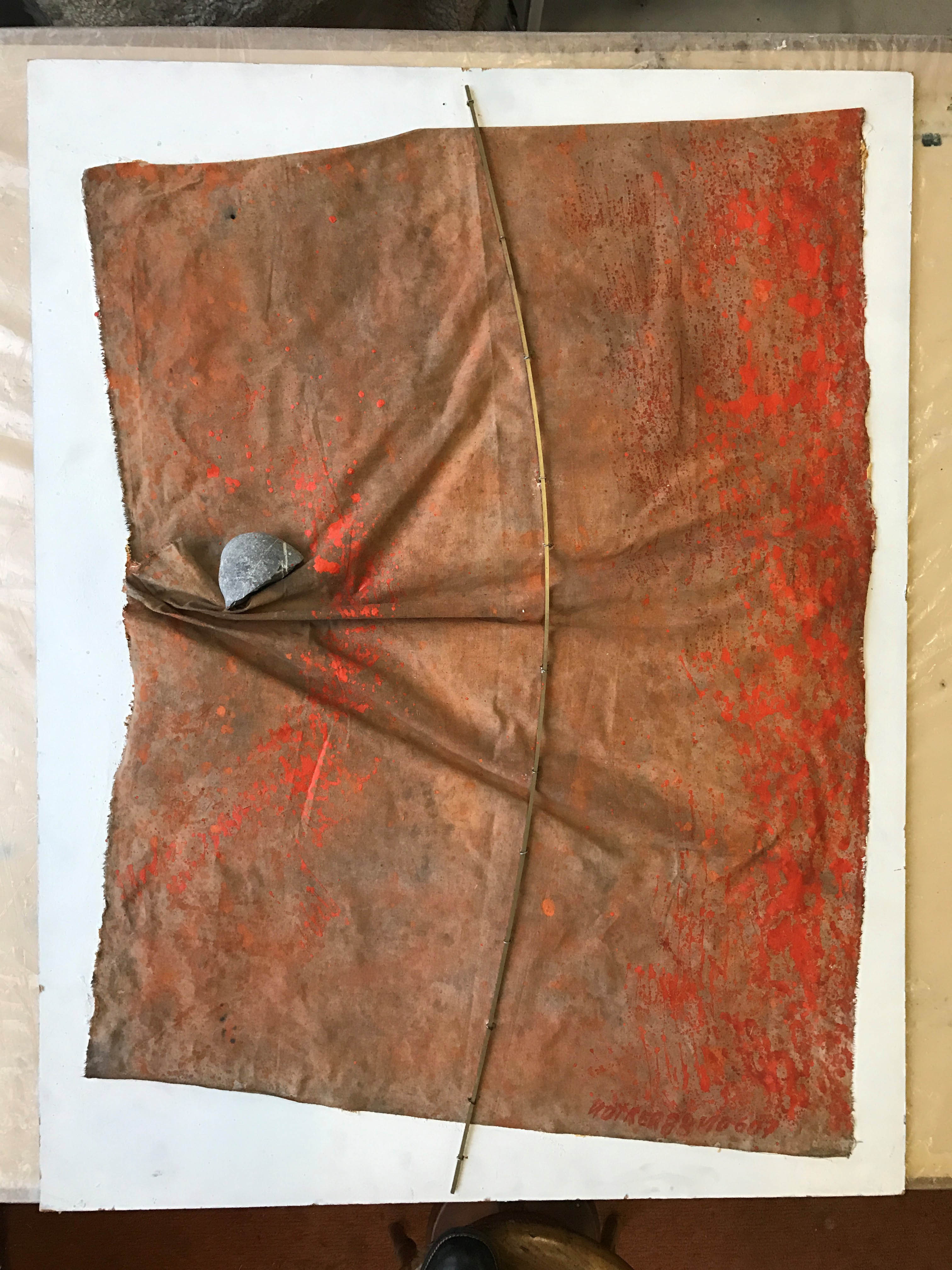 Tempera auf Stoff, Stein udn Seisen auf Holz