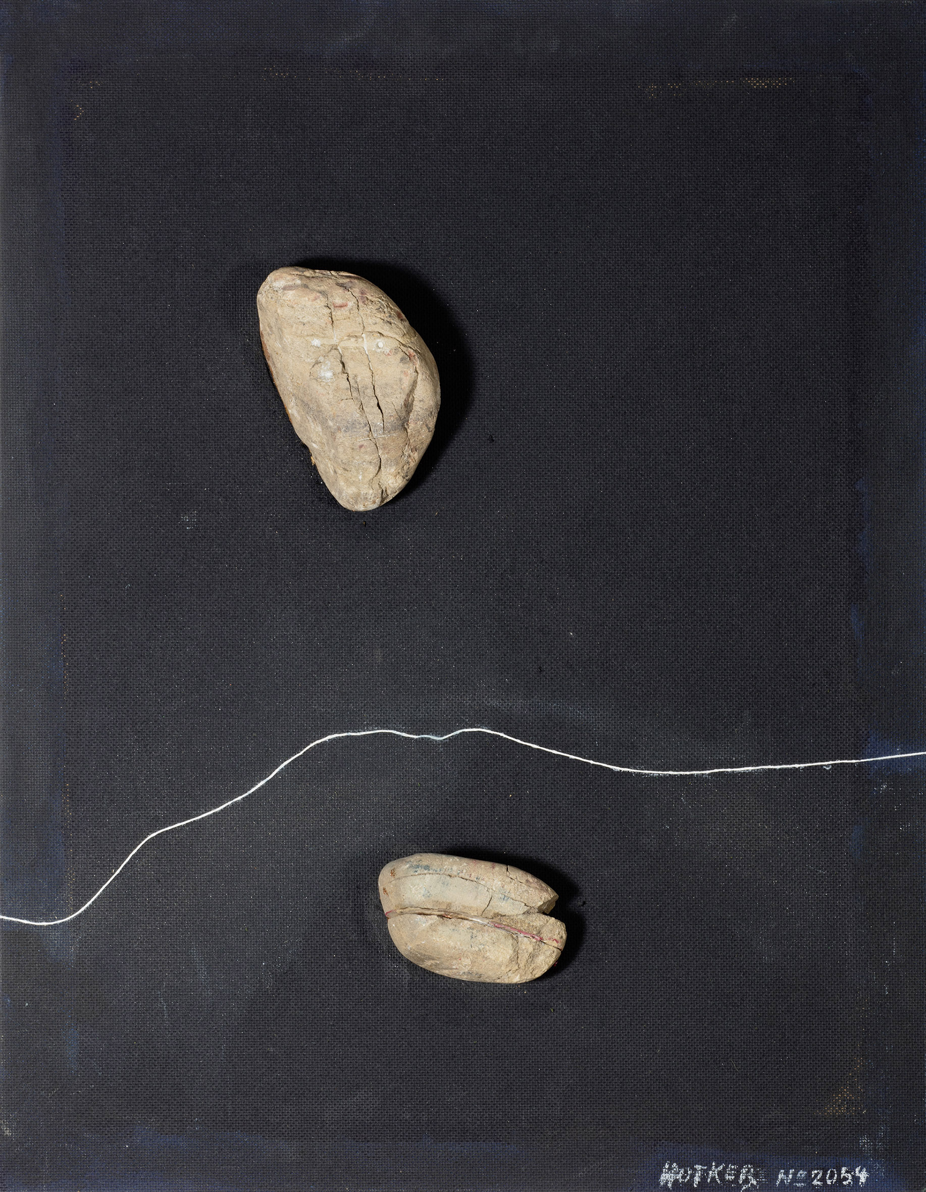 Acryl, Steine, Faden auf Hartfaserplatte